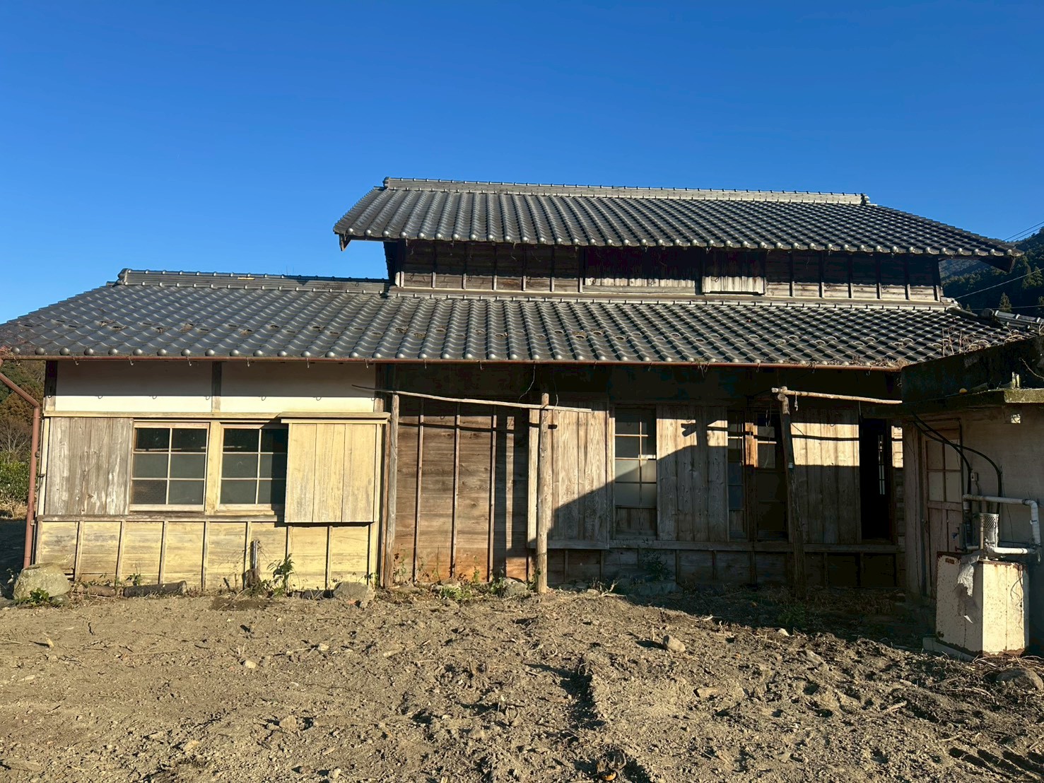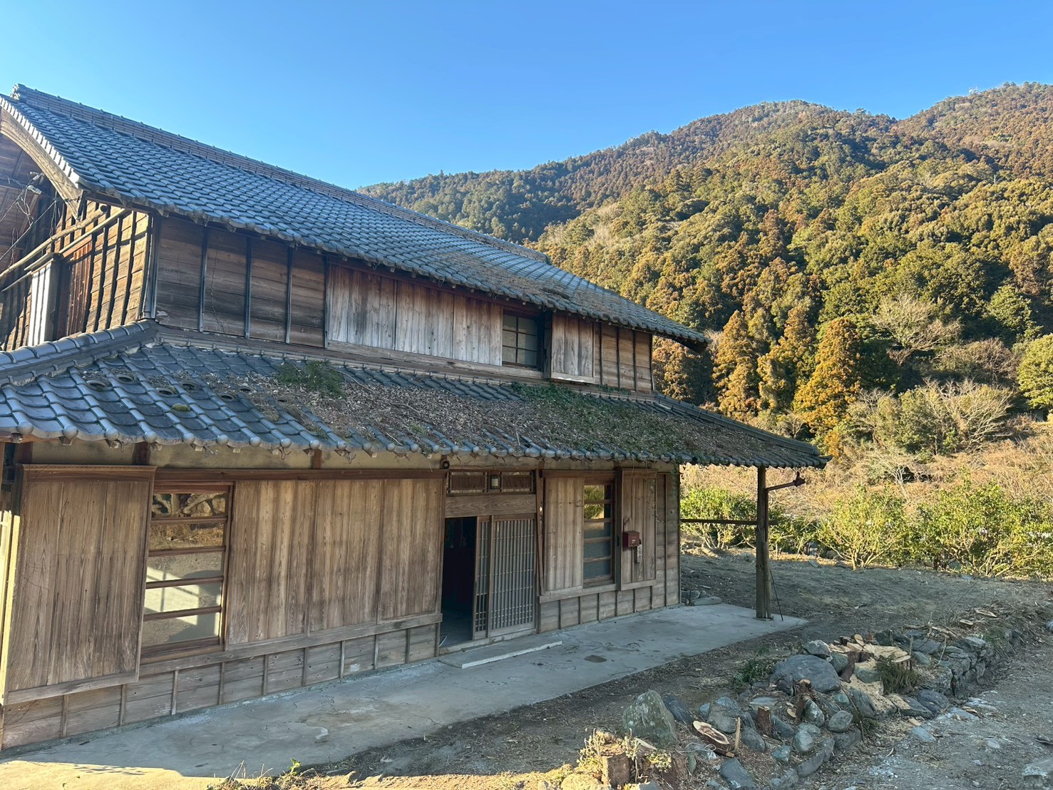 神山町役場から国道を車で5分走ると、 立派な2階建て、よろい張りの古物件がみえてきます。 こちらの物件、床が腐ってぬけています。 ただ天井と屋根はリフォーム済できれいな状態なので、古物件改修後の床に土間を考ている方におすすめです。 隣地に田付き! 国道を挟んで向かいには鮎喰川が流れていますので、家の前の河原でBBQが叶います!